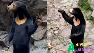 On social media, a viral video of a Chinese sun bear gained attention after it was seen waving to tourists, sparking speculation that it might be a human in disguise. The video stirred curiosity due to the bear’s unusual stance, leading some to suggest it might be a person in