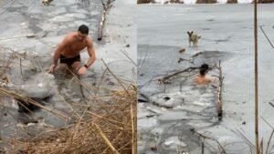 On social media, a viral video showed a man jumping into a freezing lake to rescue a stranded dog, leaving viewers heartwarmed. On YouTube, a video captured an incredible act of heroism when a man jumped into a freezing lake to rescue a trapped dog while onlookers cheered. The video